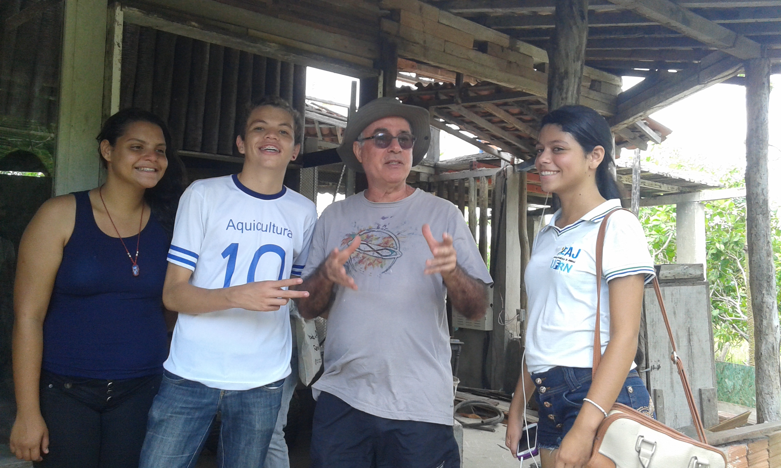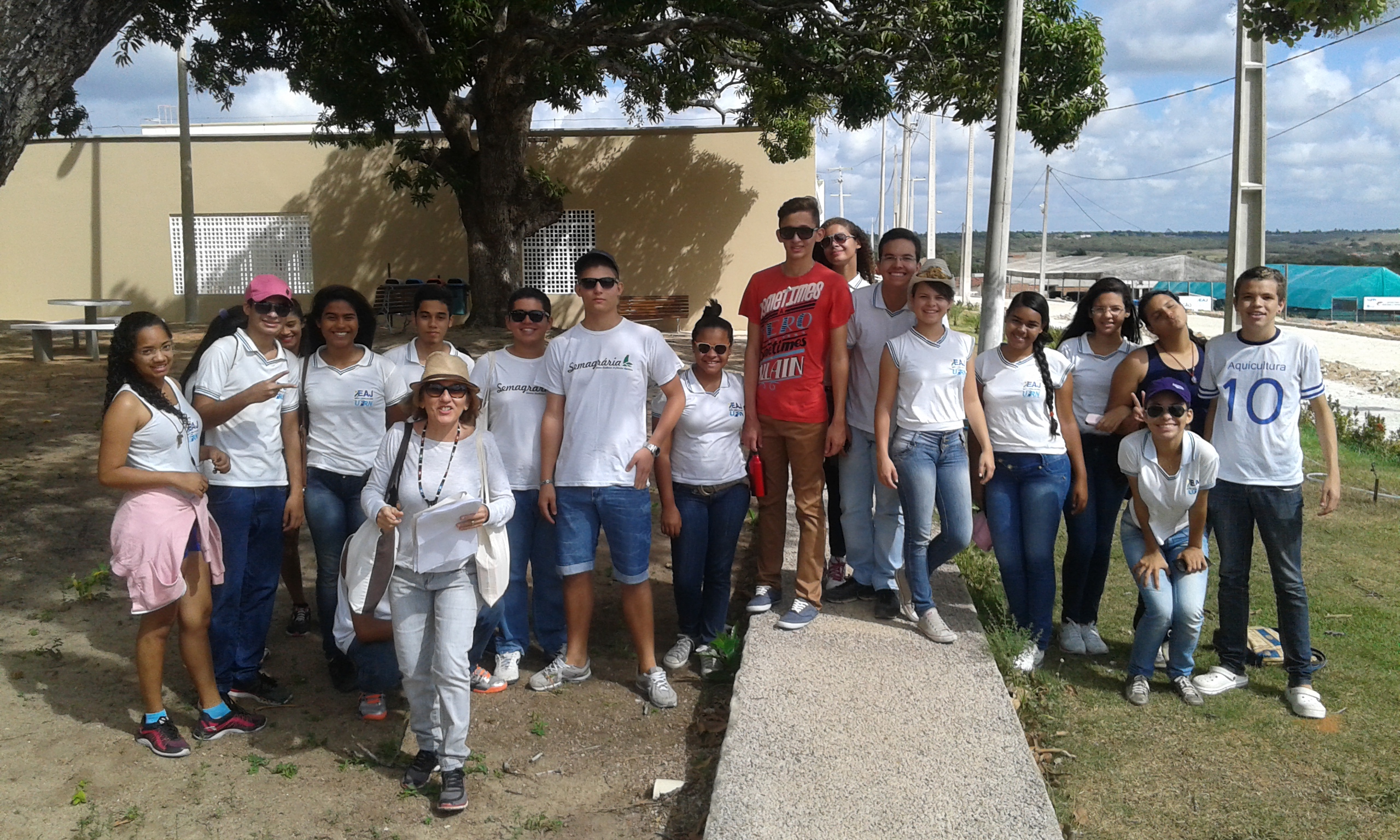 Les étudiants du cours de halieutique (EAJ) à l’entrée de la ferme Araça, à Macaíba. (Crédit photo: Fabio Santana).